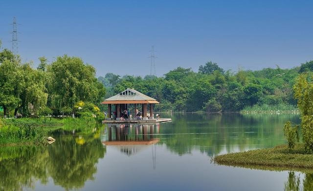 城市里世纪公园,雕塑群散落一地。灯光秀每晚八点,人都在湖边凑热闹。王震将军伸手在前,后面战士拉犁、牛拉着锄头。长廊墙上照片一张一张挂着,不收门票。