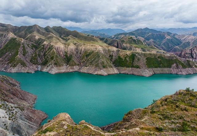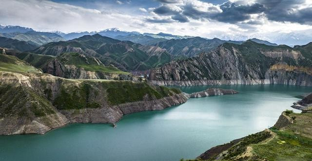道路弯到玛纳斯县清水河乡八十公里外,肯斯瓦特湖就在那。山下湖畔不收门票,停车20元,环湖游船一百元。五到九月花最多,湖水分成玉蓝、翠绿、奶黄三块。湖上还倒映天山雪峰。两岸是侏罗纪山系,不停转弯。