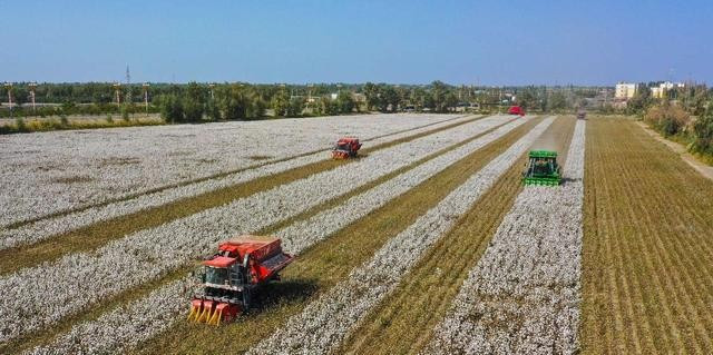 白色棉絮整片飘起来,四下里看不到边。观景台上站满了人,老棉农拿着老式机器讲解。棉田规模最大,“白色海洋”全世界找不到第二个。