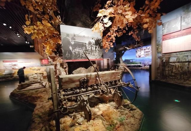 旁边木轮牛车站在地上,有人把石磨推了推。听说世界唯一的军垦活着的遗址也就是这。往前,技师在体验场教着拉犁,还能进大厅看怀旧剧。