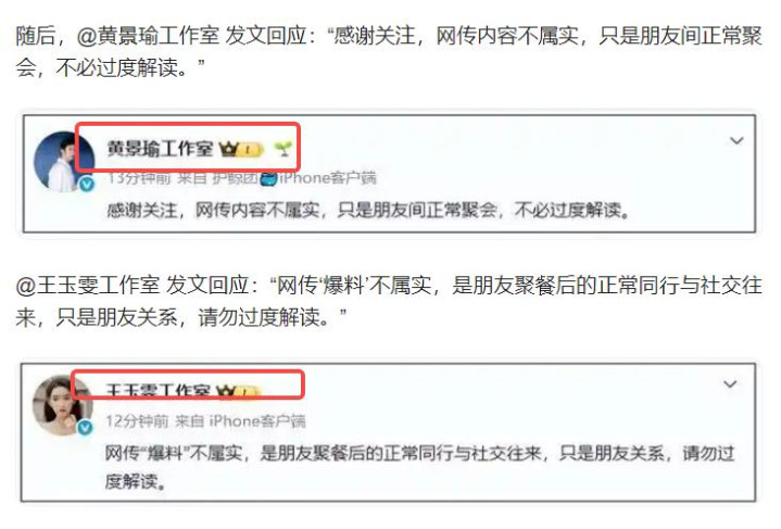 本文内容信息来源:晨娱码头、黄景瑜工作室、王玉雯工作室、极目新闻等