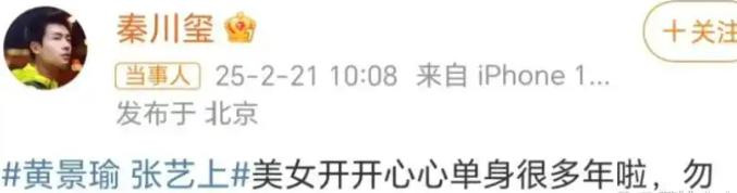 从那时候她就多次提及张艺上,暗指对方介入了自己和黄景瑜的感情。