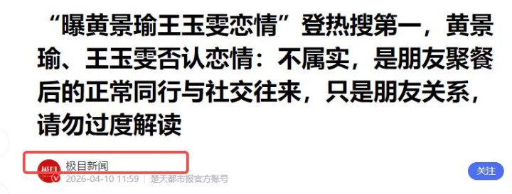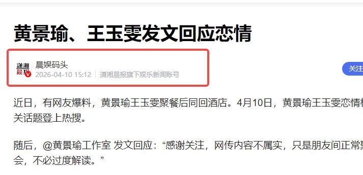 此番黄景瑜与王玉雯的绯闻刚曝出就迎来回应。