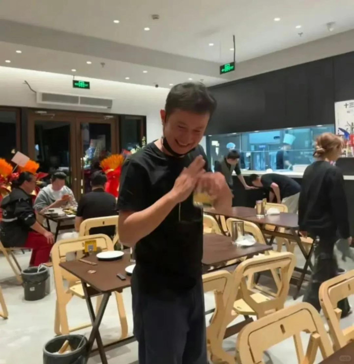 网友说,文章几乎守在店里,还换上统一的工作 T 恤,亲自迎客、点单、和食客聊天,完全没有当年的明星架子。